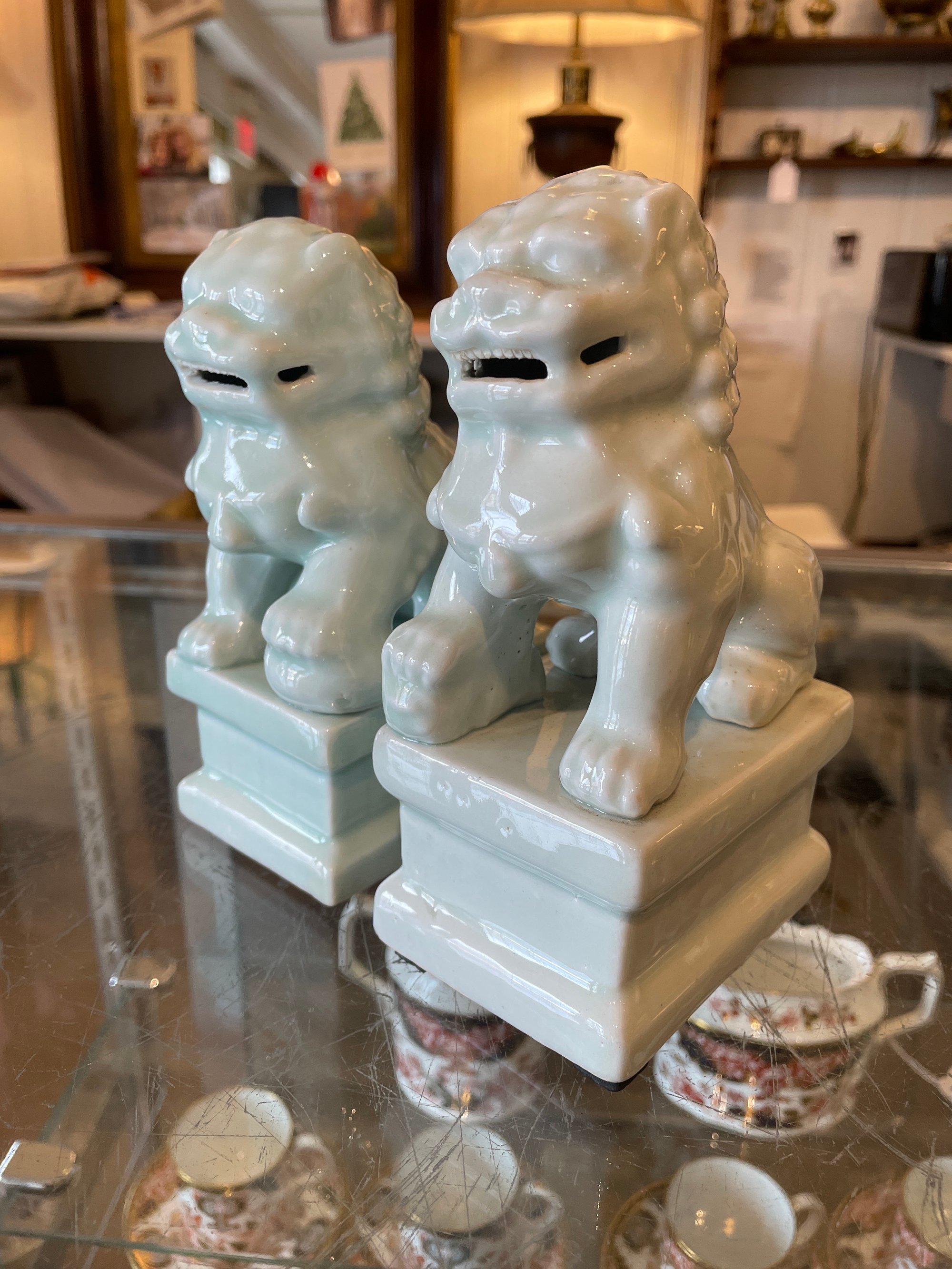 Pair of contemporary celadon Foo Dogs. 6” Height.