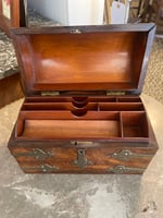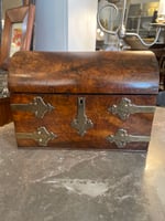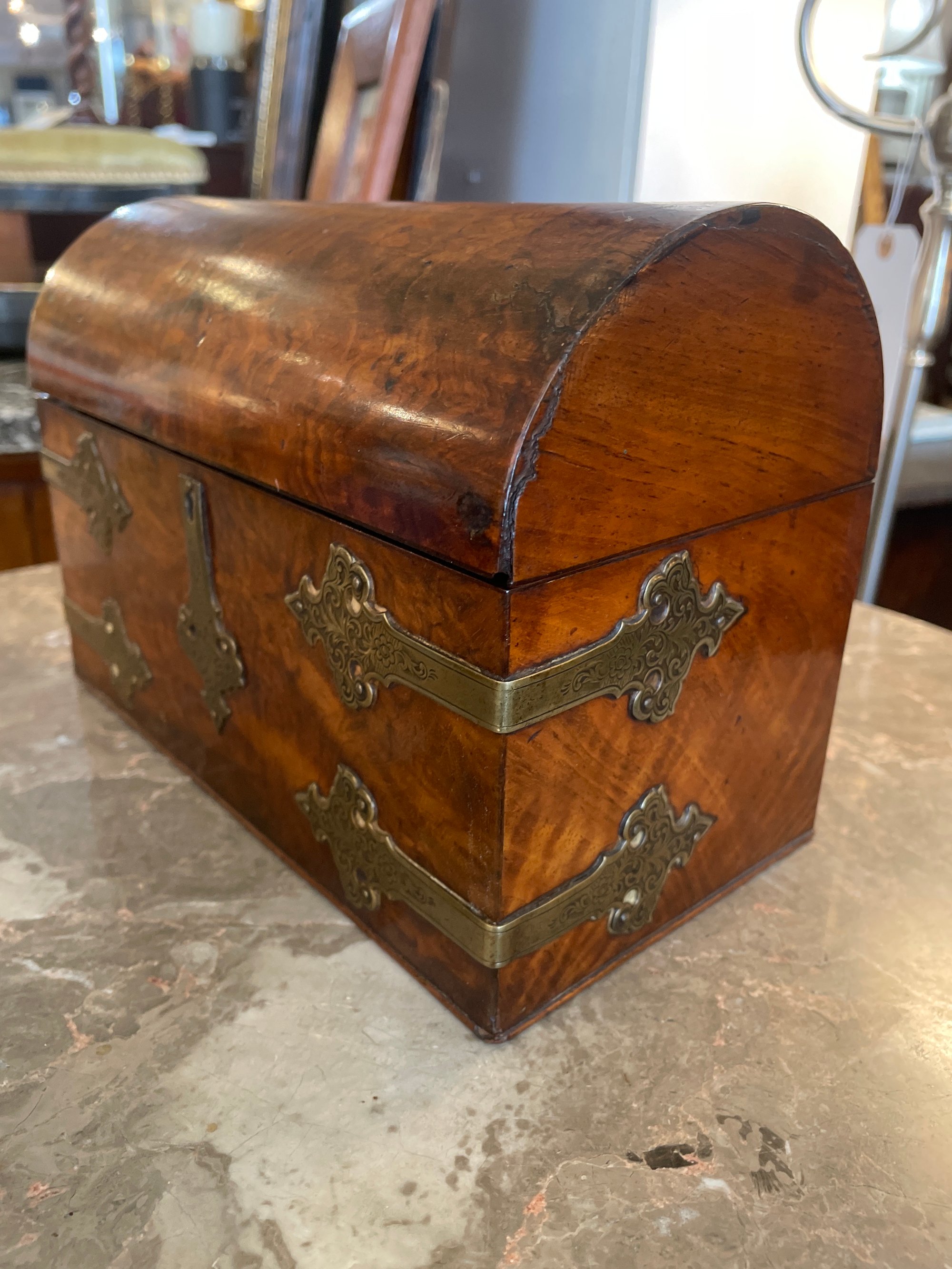 19th century French stationary box in burled walnut with beautiful brass accents. 6.25” Height, 8.75” Length, 4.5” Depth.